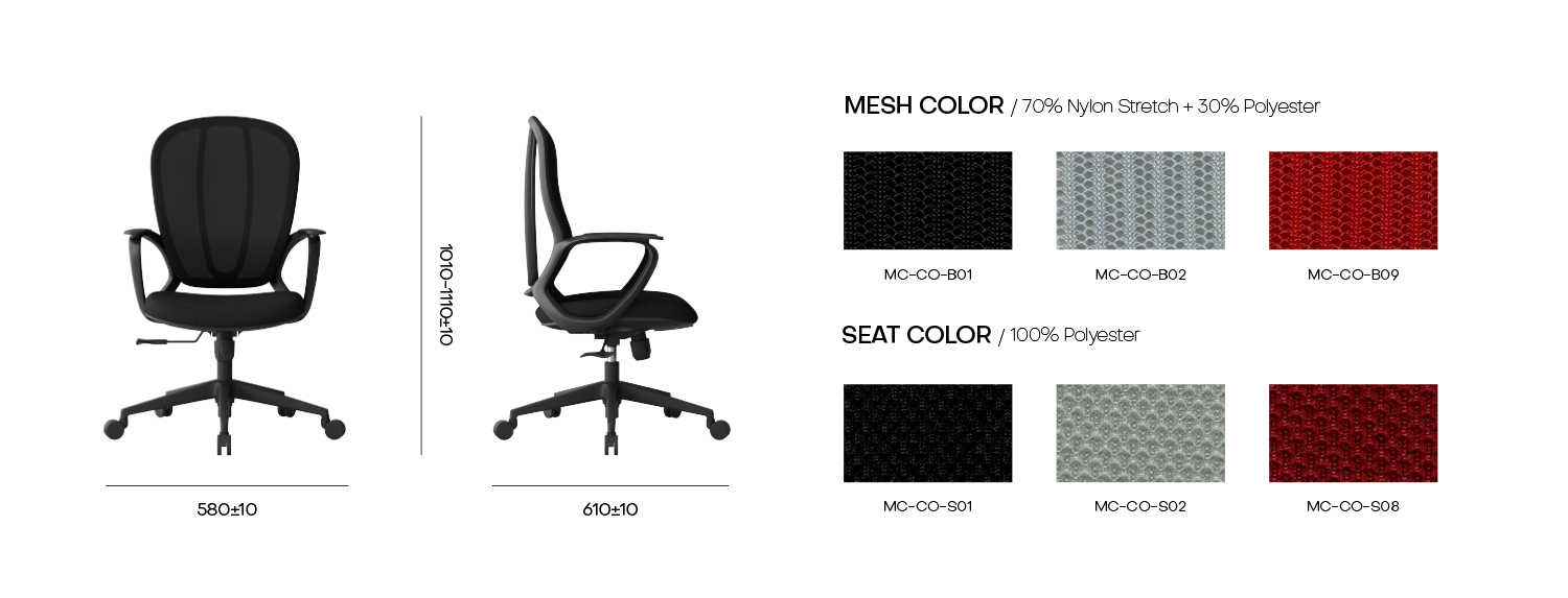 | Backrest | PP with nylon mesh | |||||